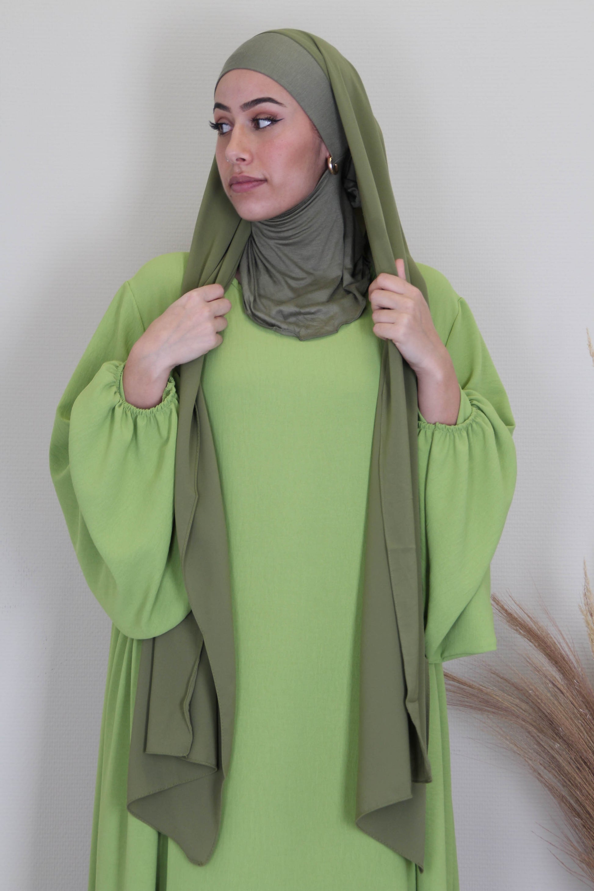 Hijab en soie de medine avec cagoule intégré en soie de medine.