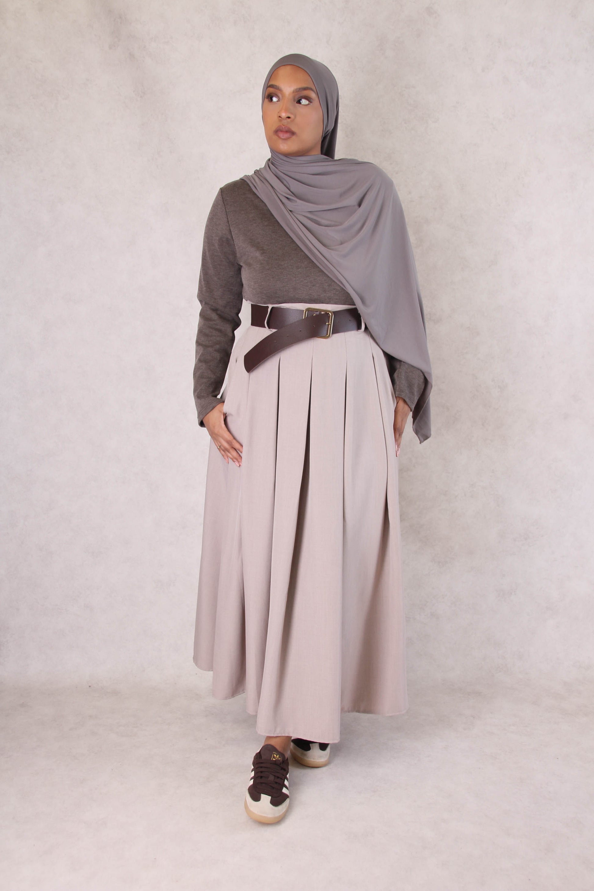 Robe 2 en 1 Plissée Taupe