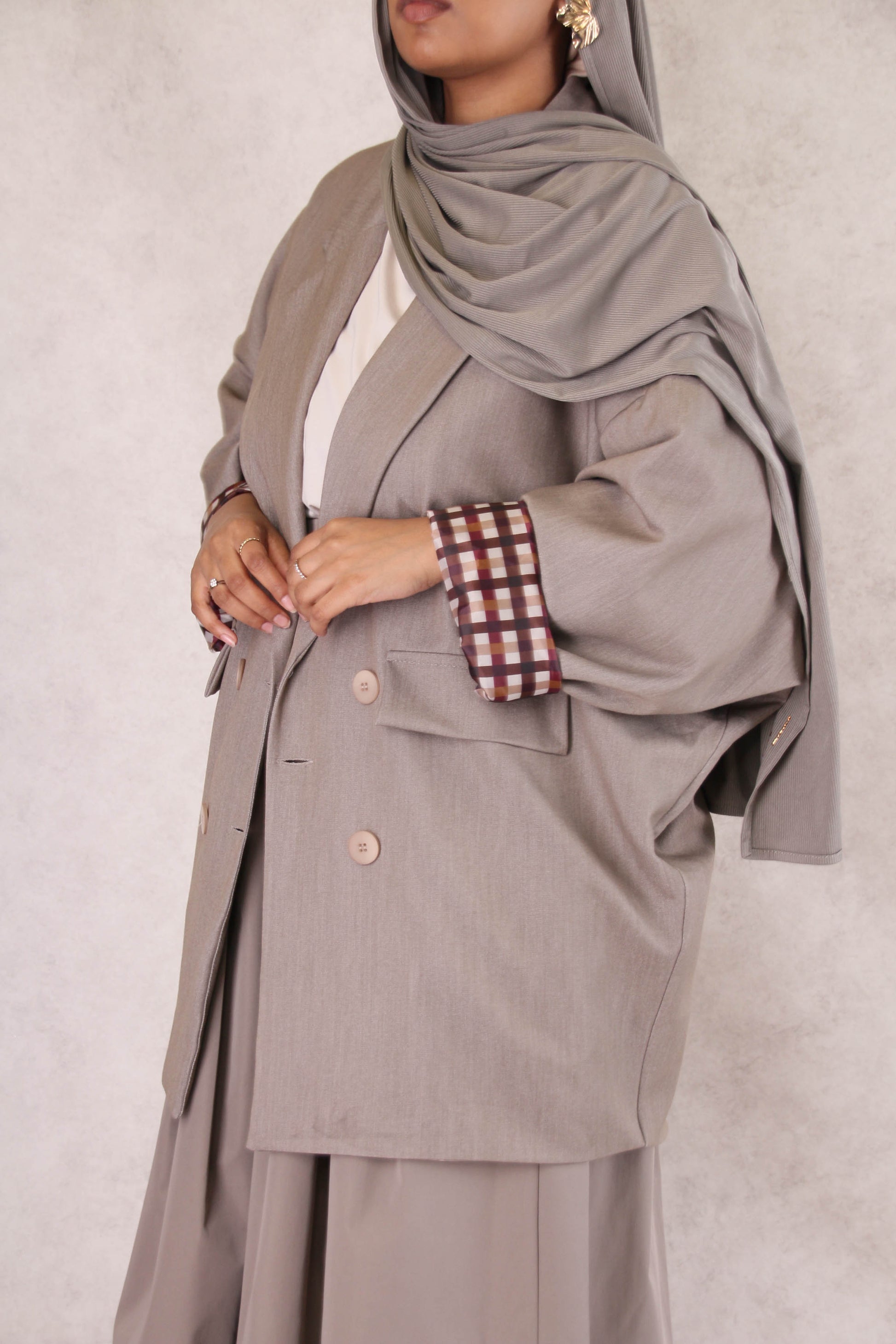 Une veste loose oversize au style moderne et décontracté. Son tombé ample et ses manches retroussables avec doublure à carreaux ajoutent une touche originale et tendance. Facile à superposer, elle se porte aussi bien sur une jupe longue que sur un pantalon fluide pour un look chic et confortable.